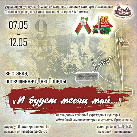 8 мая 2024 года в 12.30 в Оршанской городской художественной галерее В. А. Громыко пройдет патриотическая акция «Память сердца», посвящённая Дню Победы. В рамках акции состоится торжественное открытие выставки живописи и графики «И будет месяц май…» из фондовых собраний учреждения культуры «Музейный комплекс истории и культуры Оршанщины».