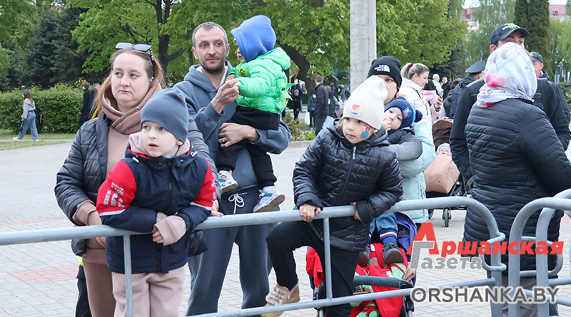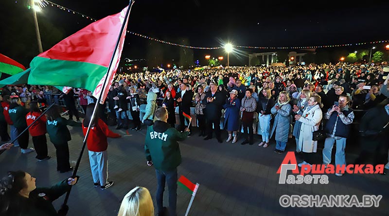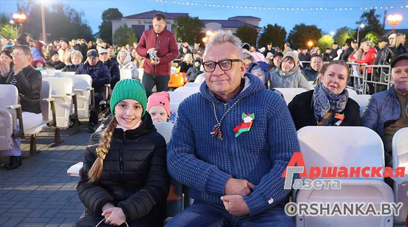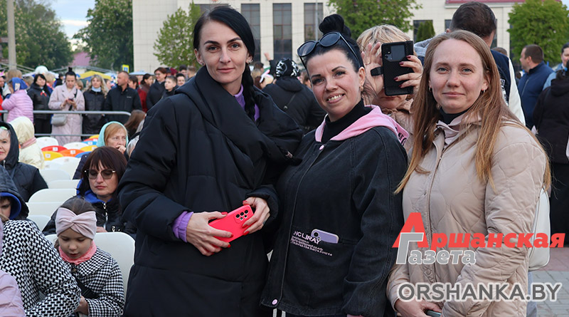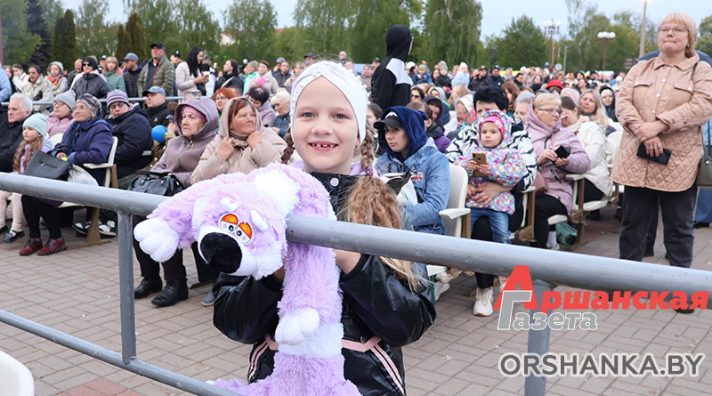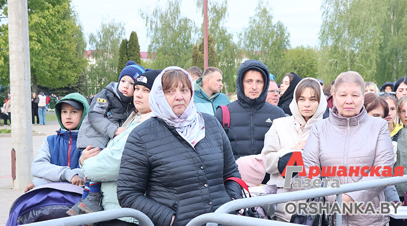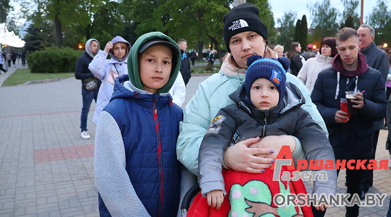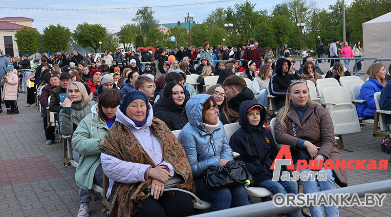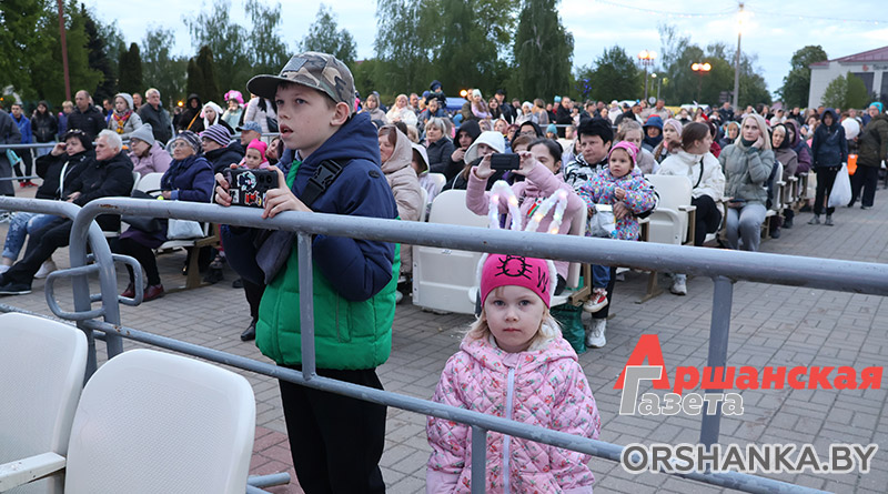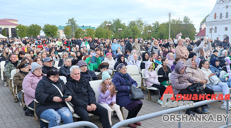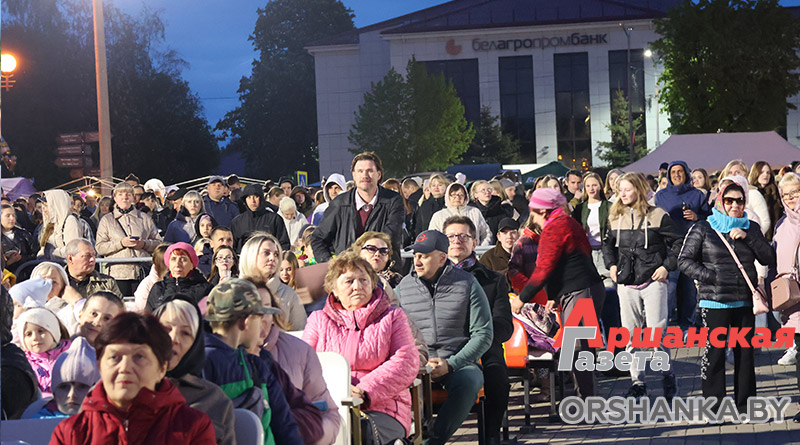На площади возле коллегиума иезуитов собрались сотни оршанцев. Примечательно, что не только люди старшего поколения, но и молодежь, и семьи с детьми. Всеми известные и любимые песни, как «Катюша», «Синий платочек», «Темная ночь», «Гармошка фронтовая» и многие другие, зрители пели вместе с артистами. А под некоторые даже танцевали.