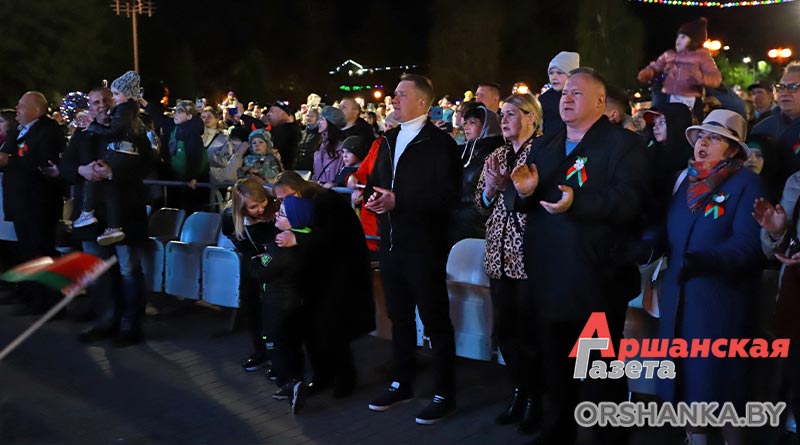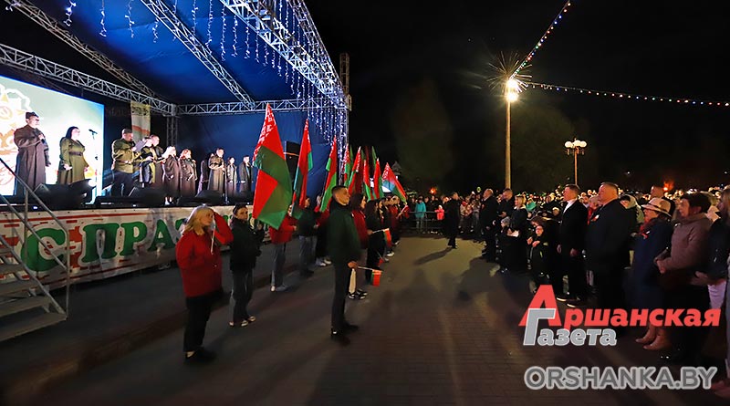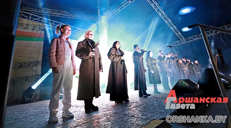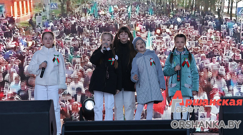 Главным аккордом праздника стала патриотическая акция «Главная песня – песня Победы». Вместе с артистами и зрителями песню «День Победы» исполнили работники Оршанского райисполкома во главе с председателем Игорем Морозом, депутаты, представители предприятий, организаций, а также активисты БРСМ. Красивым завершением дня стал праздничный салют, который раскрасил небо над Оршей яркими огнями.
