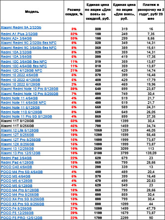 Перечень моделей Xiaomi и POCO со скидками представлен в таблице: