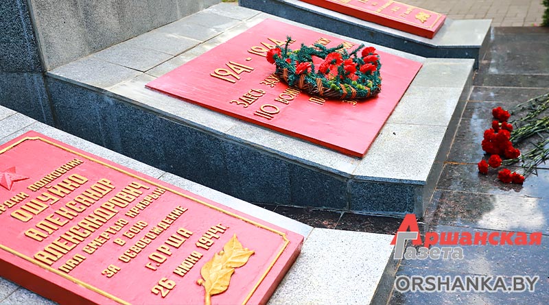 Председатель Оршанского райисполкома Игорь Мороз также возложил цветы к братской могиле воинов Красной Армии в городском парке. Вместе с ним почтили память погибших работники райисполкома и депутат областного Совета депутатов Виктор Мишульский. На этом месте захоронены 112 советских воинов, павших в боях с немецко-фашистскими захватчиками в 1941 г. и при освобождении Орши в 1944 г.