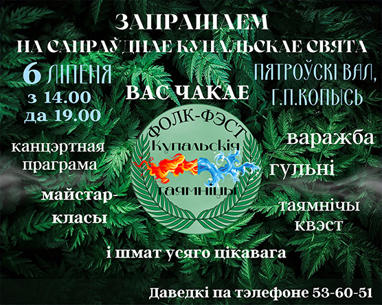 6 июля с 14.00 до 19.00 на Петровском валу в г. п. Копысь пройдет фолк-фест «Купальские тайны».