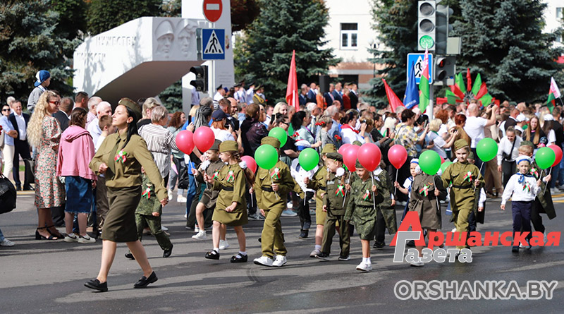 Затем состоялось праздничное шествие с участием силовых структур, трудовых коллективов организаций, учебных и медицинских учреждений, общественных объединений и военно-патриотических клубов Оршанщины.