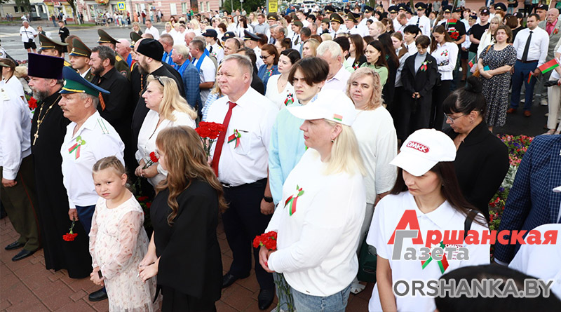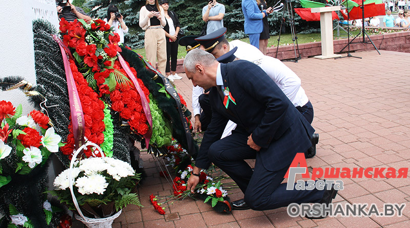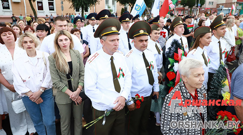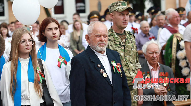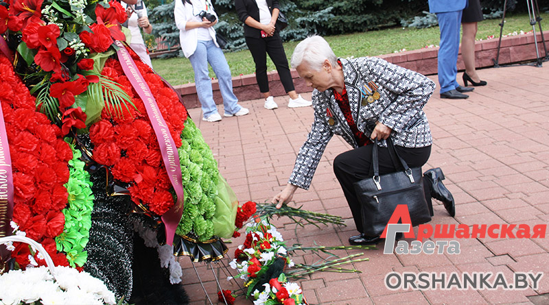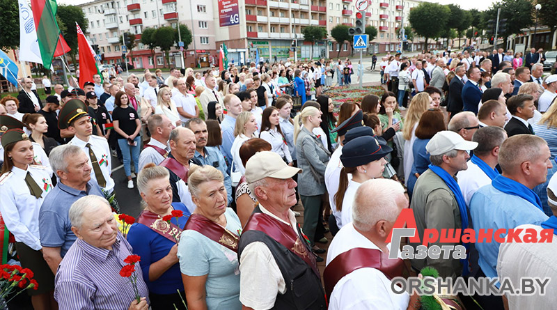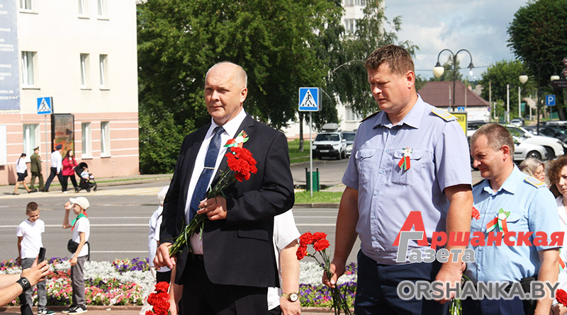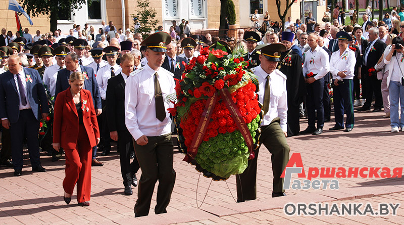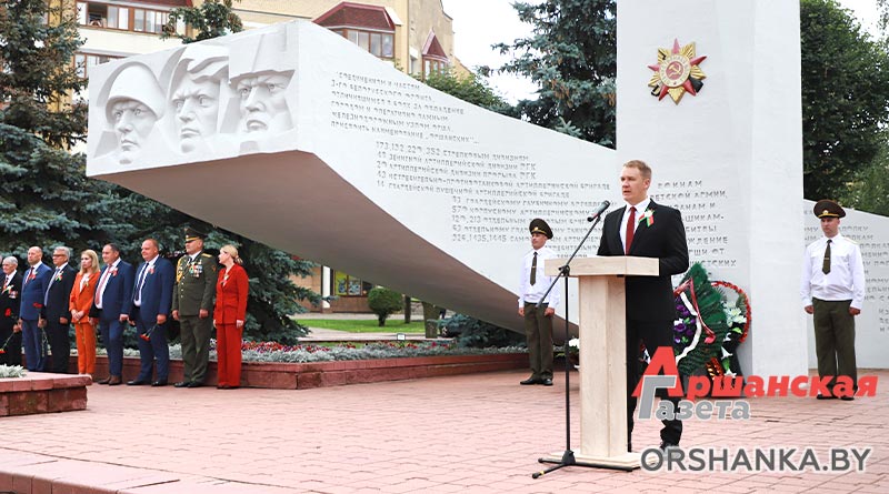У Памятного знака воинам-освободителям собрались руководство Оршанского райисполкома и районного Совета депутатов, депутаты Палаты представителей Национального собрания Республики Беларусь, силовых структур и ведомств, Белорусской православной церкви, общественных объединений и политических партий, предприятий, организаций и учебных заведений Оршанского района, жители региона. Со словами поздравления к жителям и гостям Оршанского региона обратился председатель Оршанского райисполкома Игорь Мороз.