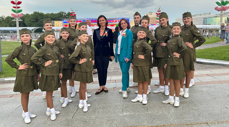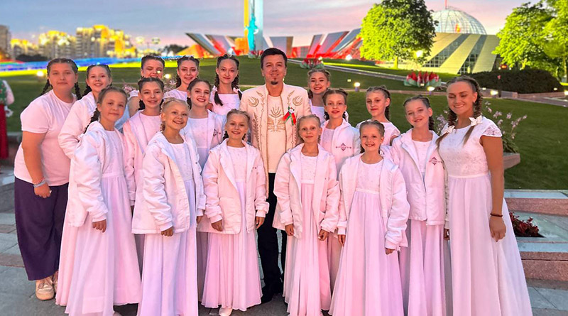 Артисты студии были удостоены чести открывать праздничный концерт, а также петь гимн страны и нести Государственный флаг Республики Беларусь.