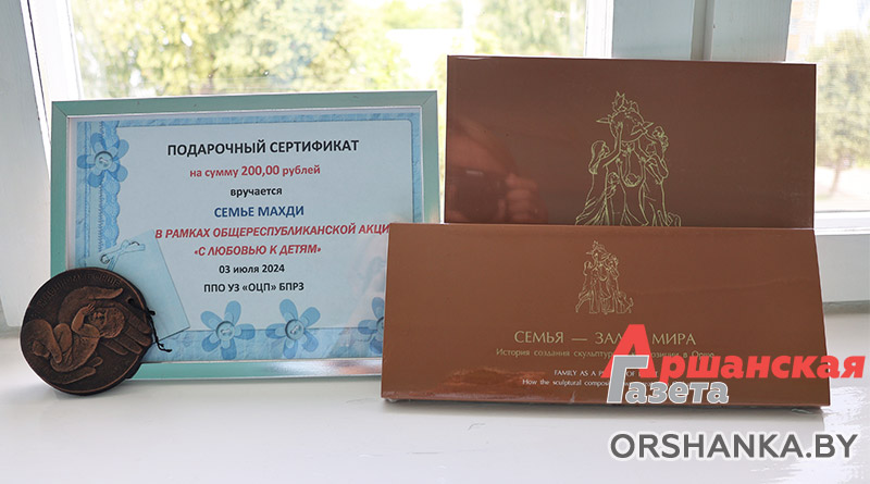 Гости тепло поздравили молодую семью и пожелали малышу расти здоровым, крепким, радовать своих родных успехами и возможно в будущем стать достойным продолжателем семейной династии. В завершение маме подарили подарки от Оршанского райисполкома, РОО «Белая Русь», профсоюза УЗ «ОЦП», а также вручили медаль «Рожденному в Орше».