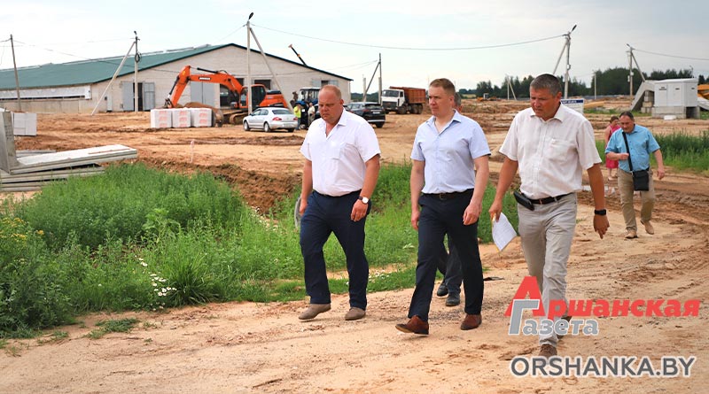 Глава Оршанского района Игорь Мороз ознакомился с ходом работ на строительных площадках молочнотоварной фермы вблизи д. Высокое и детского сада.