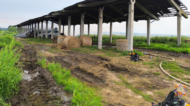 По прибытии к месту вызова подразделений МЧС наблюдалось открытое горение сенохранилища, принадлежащего государственному предприятию «Межево-Агро». На момент возникновения пожара внутри находилось 50 тонн сена покоса 2023 и 2024 года.