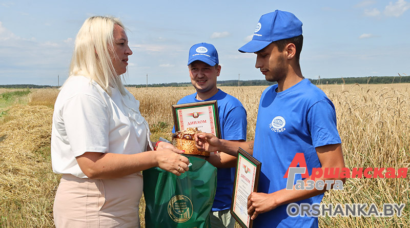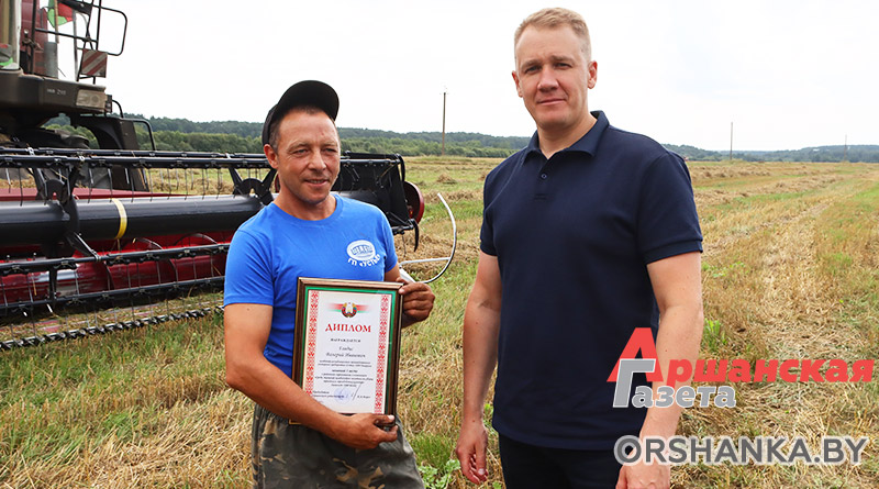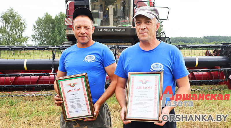 В субботу в РПУП «Устье» НАН Беларуси» председатель Оршанского райисполкома Игорь Мороз, начальник управления по сельскому хозяйству и продовольствию Оршанского райисполкома Александр Иваницкий, председатель райкома профсоюза работников АПК Ольга Никитенкова, руководство предприятия поздравили с тысячным намолотом экипаж комбайнеров в составе Александра Богданова и Валерия Гавдиса.