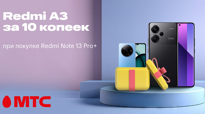 Двойная выгода в МТС! Смартфон Redmi А3 за 10 копеек при покупке Redmi Note 13Pro+