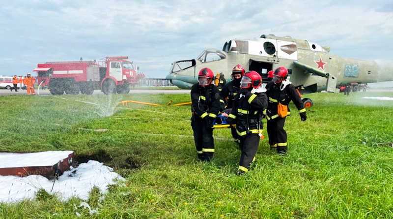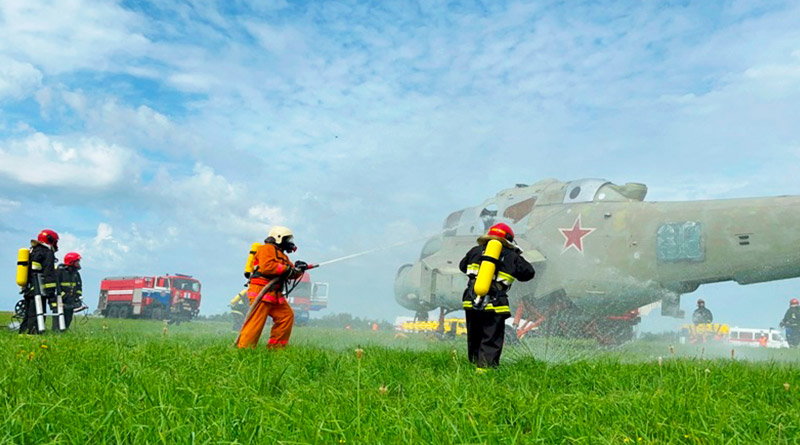 На аэродроме «Орша» спасатели провели полномасштабные учения