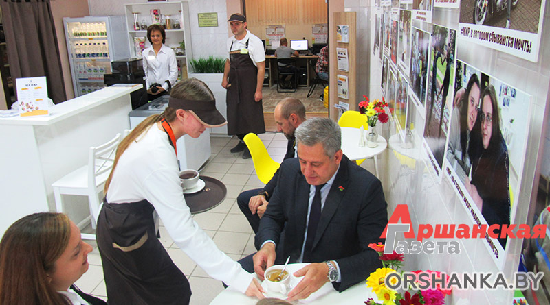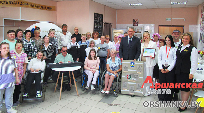 Мероприятие прошло на базе инклюзивной кофейни «Добрый кофе» Оршанского ТЦСОН. В гости к постояльцам отделения социальной реабилитации, абилитации инвалидов приехал начальник Витебского филиала «Банка развития Республики Беларусь» Сергей Лапехо. Он пожелал всем крепкого здоровья, мирного неба над головой и чтобы каждый день приносил только радость, а также вручил денежный сертификат. В свою очередь посетители отделения подготовили для гостя концертную программу, угостили ароматным кофе и свежей выпечкой, а на память вручили декоративное панно с изображениями достопримечательностей Оршанского района.