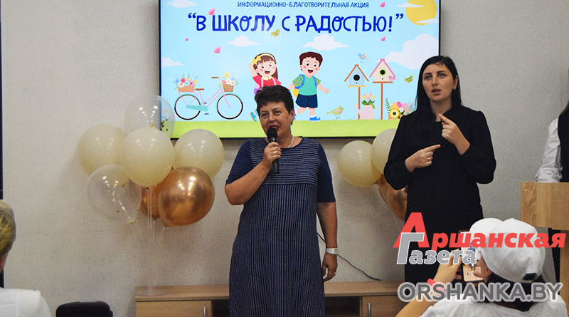 В территориальном центре социального обслуживания населения Оршанского района прошла традиционная информационно-благотворительная акция «В школу с радостью!». Поздравить детей с наступающим учебным годом пришли председатель Оршанского районного Совета депутатов Инна Хомутовская, председатель Оршанского районной организации РОО «Белая Русь» Инна Крачек, председатель Оршанской районной организации ОО «Белорусский союз женщин» Жанна Радевич, представители Оршанского районного отделения Белорусской партии «Белая Русь», Оршанской районной организации «Белорусский Фонд Мира». К акции также присоединились магазин «Вундеркинд» и ООО «ФураБай».