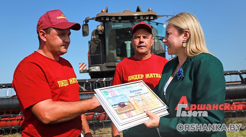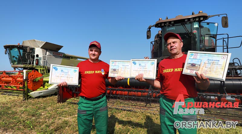 Это работники ОАО «Агрокомбинат «Юбилейный» Владимир Полячинский и Максим Сернов. С этим важным событием прямо в поле их поздравили председатель Витебского облисполкома Александр Субботин, председатель Оршанского райисполкома Игорь Мороз, руководство предприятия и профсоюзы.