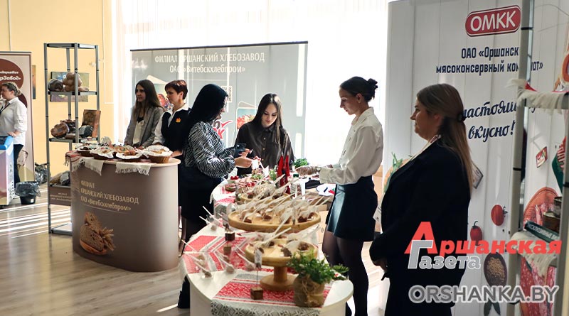 На втором этаже ГЦК «Победа» проходила презентация и выставка-дегустация продукции предприятий Оршанщины. Представители Оршанского льнокомбината, инструментального завода и станкозавода «Красный борец» познакомили ребят с производством, рассказали о выпускаемой продукции. Во время дегустации вкусности собственного производства представили агрокомбинат «Юбилейный», Оршанский мясоконсервный комбинат, хлебозавод и Оршасырзавод.