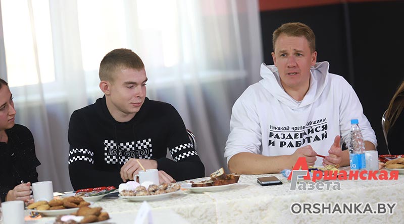 Далее встреча продолжилась музыкальным квизом, а после ребята просто засыпали главу района различными вопросами, в том числе и личного характера. Поинтересовались, чем он увлекается, какие фильмы предпочитает смотреть, как проходит рабочий день председателя райисполкома. Прозвучало и немало вопросов, связанных с развитием Оршанского региона.