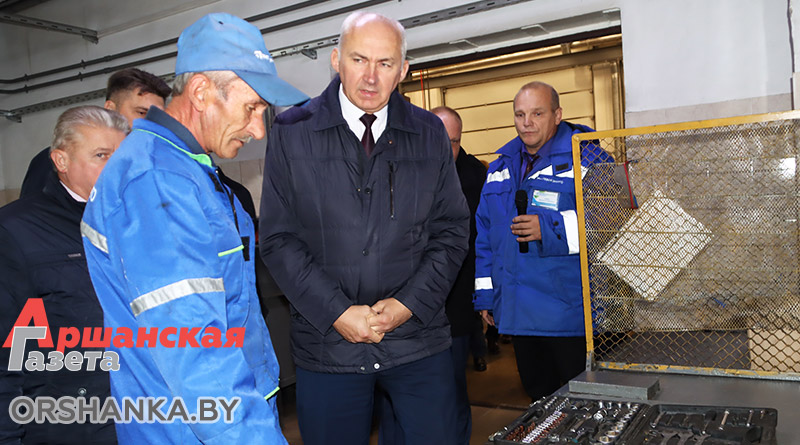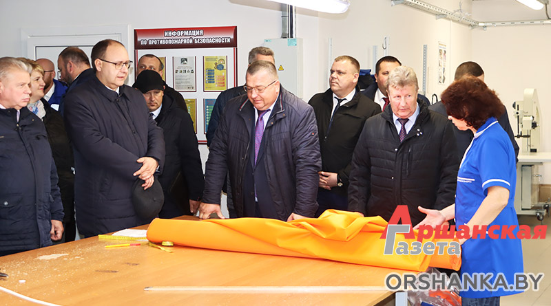 В филиале «Тепличный» РУП «Витебскэнерго» участники выездной коллегии посетили машинный двор предприятия, а также швейный цех, где изготавливают спецодежду и другую продукцию.