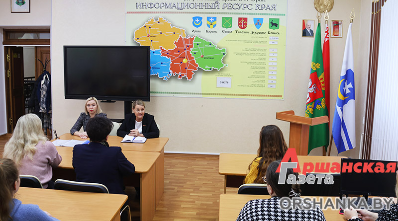Председатель Оршанского районного Совета депутатов Инна Хомутовская провела рабочую встречу с коллективом Оршанского зонального государственного архива.