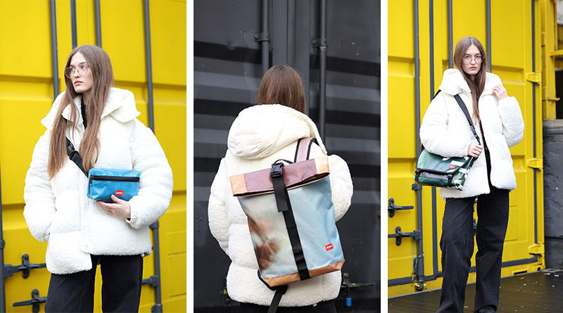 Экомерч для МТС создал минчанин Артур Дубовик, специализирующийся на теме вторичной переработки. Почти 300 кв.м. баннерного материала, который ранее в виде рекламы бренда размещался на билбордах на улицах Минска, перешиты в модные сумки и рюкзаки.