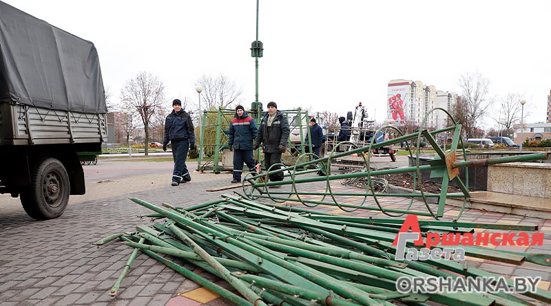 Каркасные ели собрали на площади возле Городского дворца культуры «Орша» в районе льнокомбината, в микрорайоне на Аллее летчиков по ул. Анатолия Соляникова. На прошлой неделе завершили монтаж ёлки возле Ледовой арены. Зеленые красавицы ждут новогоднего убранства.