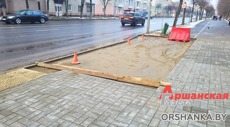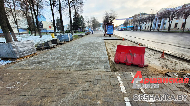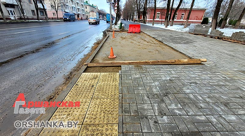 В Оршанской спецавтобазе журналисту «Аршанскай газеты» рассказали, что эти работы продолжаются возле остановки ГЦК «Победа», где также уложили тактильную плитку и идет замена деформированной тротуарной.