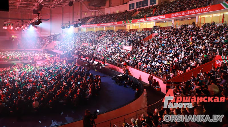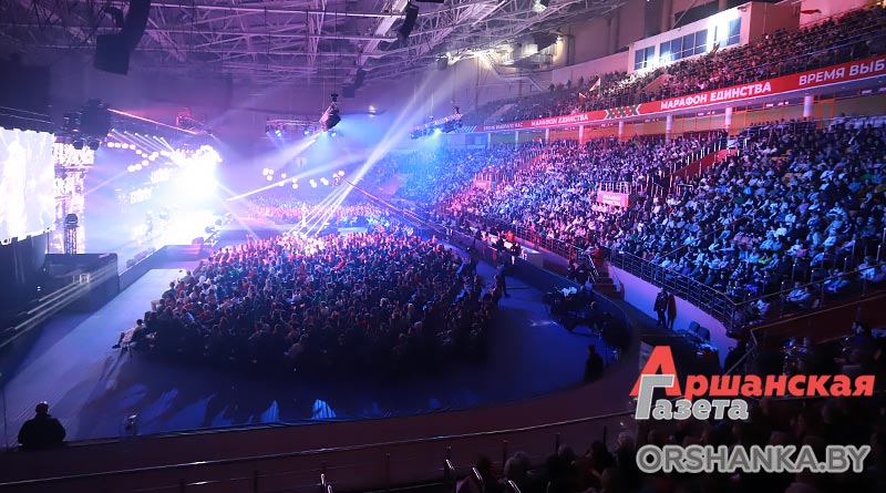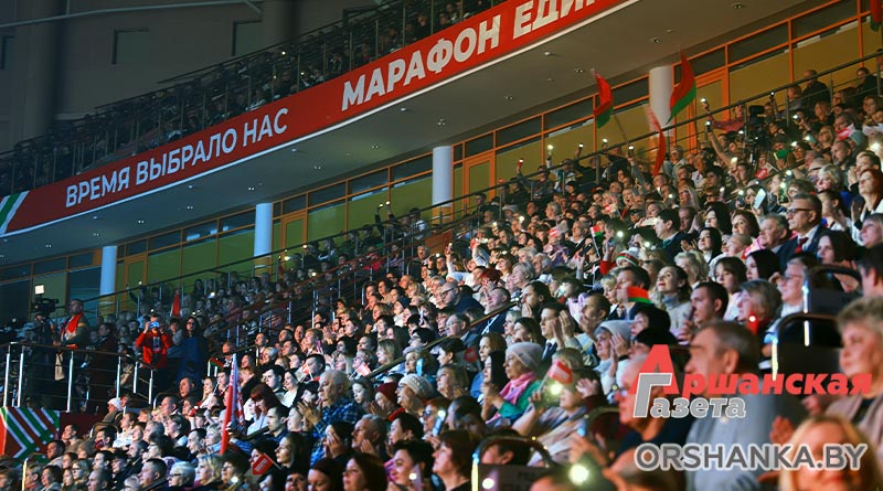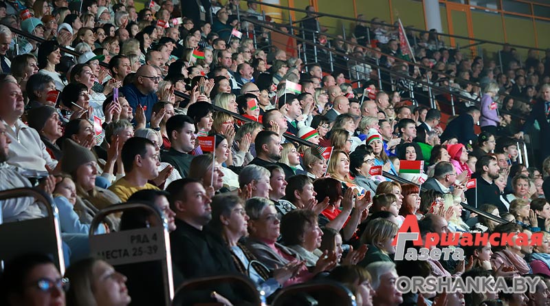 Концерт «Время выбрало нас» стал самым ярким и звучным событием республиканской общественно-культурной акции «Марафон единства» в Орше. Сегодня вечером на трибунах Ледовой арены не было свободных мест.