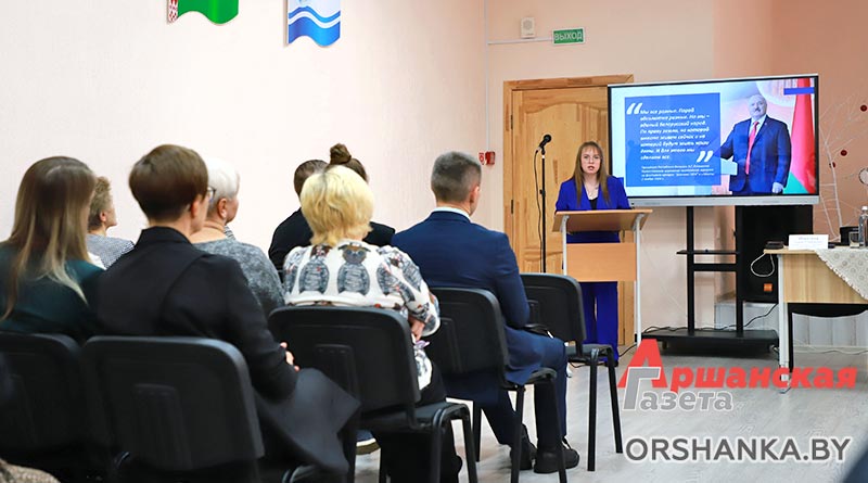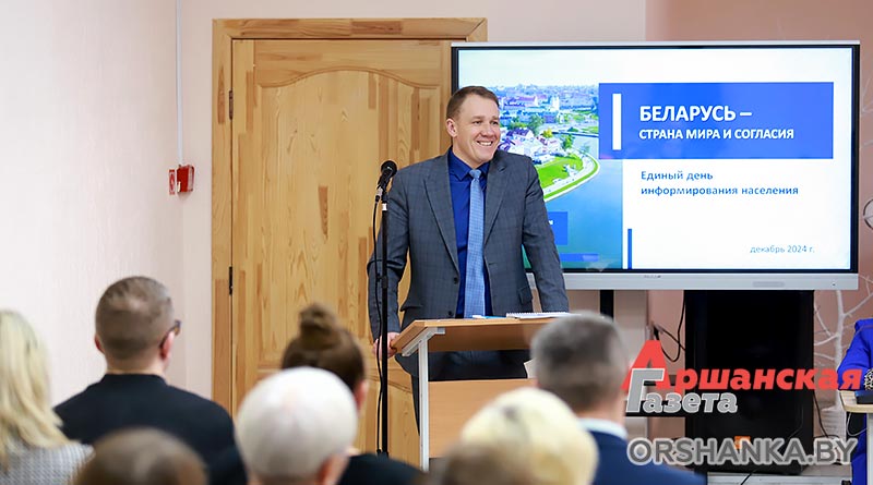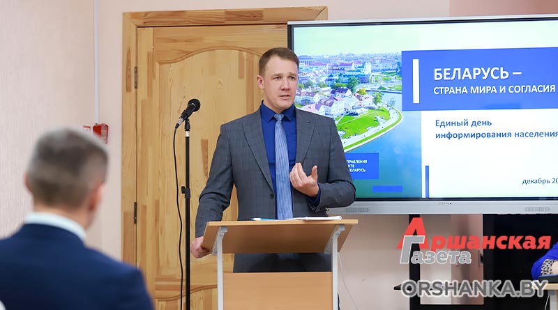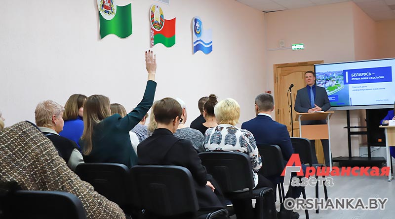 По теме дня информирования «Беларусь – страна мира и согласия» выступила начальник отдела идеологической работы и по делам молодежи Оршанского райисполкома Мария Шматова. Она рассказала, какой путь прошла Беларусь за последние 30 лет, чтобы быть независимой и суверенной, мирной, спокойной, гостеприимной страной.