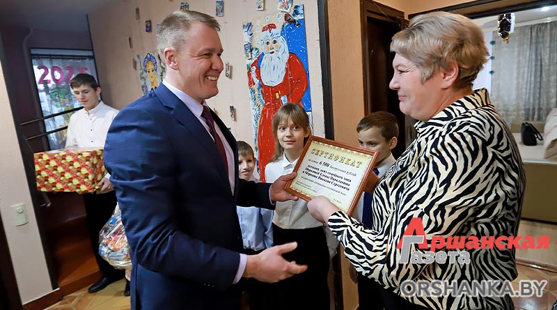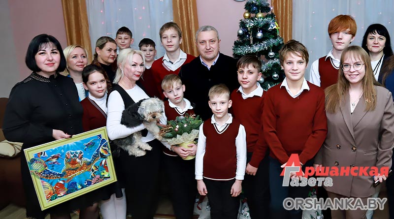 Председатель Оршанского райисполкома Игорь Мороз поздравил с новогодними праздниками воспитанников дома семейного типа Морозовых. Он приехал с подарками, а также пригласил ребят на встречу в райисполком и на экскурсию по малой родине Президента.