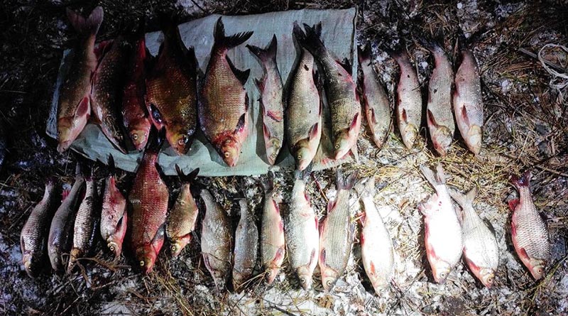 — Одного из фигурантов задержали в момент выгрузки из лодки пяти мешков с рыбой и двух мешков с сетями. Двое нарушителей попытались уйти по воде на полном ходу в сторону Орши, где и были настигнуты госинспекторами. Участниками организованной группы было незаконно добыто более 75 кг озерно-речной рыбы, в том числе и тех видов, которые занесены в Красную книгу. Ущерб, причиненный окружающей среде, составил 777 базовых величин, — рассказали в госинспекции.
