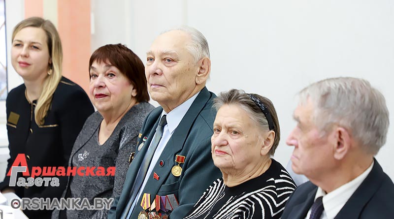 Среди почетных гостей встречи были ветеран Великой Отечественной войны, участница партизанского движения, которая в 12 лет стала связной в отряде им. К. Е. Ворошилова первой партизанской бригады им. К. С. Заслонова Анастасия Кононова и ветеран боевых действий в Афганистане, ветеран труда Валентина Мачкова. Анастасии Никитичне 92 года и она была рада присутствовать на столь душевном мероприятии, сказала искренние слова благодарности всем, кто заботится о ветеранах, находит время на общение с людьми пожилого возраста. А Валентина Ивановна как человек творческий – внештатный корреспондент «Аршанскай газеты», увлечена игрой на баяне – добавила встрече музыкальную нотку, сыграв на своем музыкальном инструменте.
