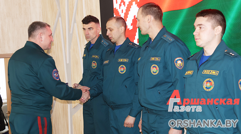 Завершилась коллегия приятными событиями. 34 спасателям Витебщины, отличившимся при ликвидации пожара в торговом центре Беларусь, были вручены соответствующие награды. Также 17 спасателей северного региона за образцовое выполнение служебных обязанностей награждены медалью «За безупречную службу» III степени. Среди них водитель пожарного аварийно-спасательного поста № 11 аг. Зубово Александр Максименко.