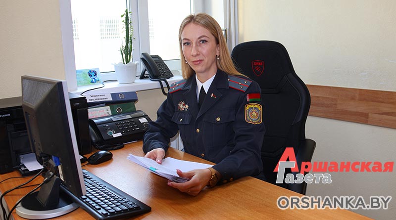 Каждый день надевает погоны капитана милиции ВРИОД старшего инспектора профилактики отдела охраны правопорядка и профилактики Оршанского РУВД Елена Лаптинская. Девушка родом из Постав. О том, что будет носить погоны, мечтала с самого детства.