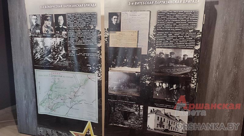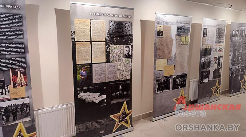 На информационных ролл-апах представлены сведения о создании партизанских отрядов на северо-востоке Витебщины, карты-схемы боев, документы и воспоминания народных мстителей.