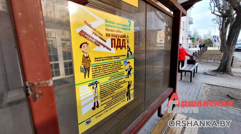 На остановках в Орше появилась социальная реклама для пешеходов