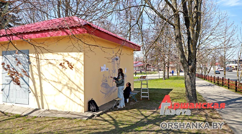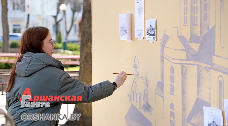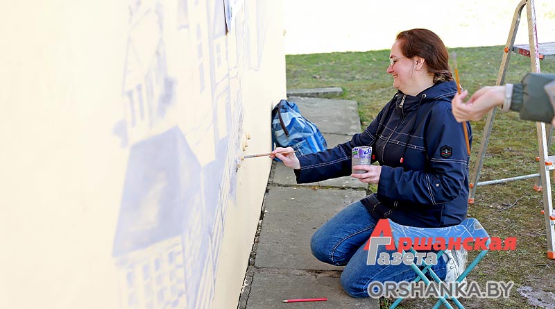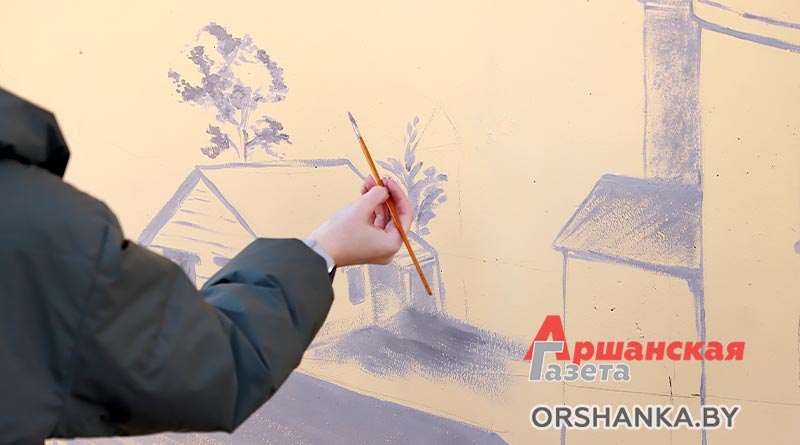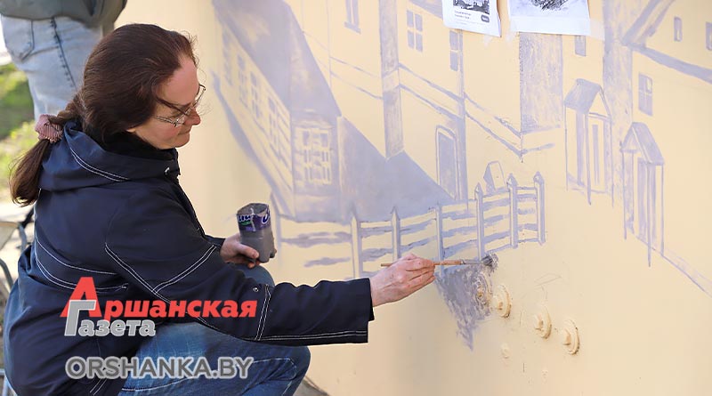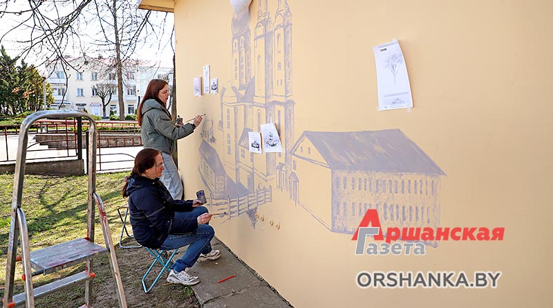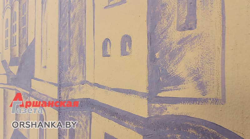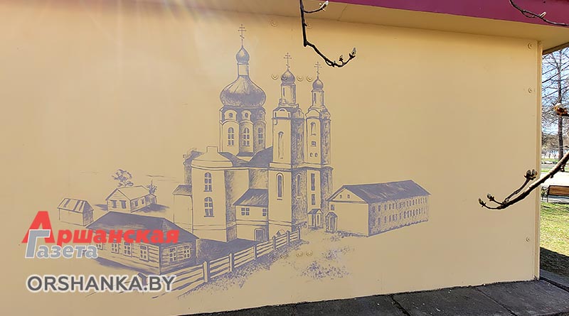 Над созданием исторического мурала работают преподаватели Оршанской городской школы искусств Татьяна Карюк и Марина Цынкевич. На стене размером 3х6 метров они создают изображение утраченного памятника архитектуры, который располагался в нескольких сотнях метрах от этого места. Это бывший Базилианский монастырь, основанный во второй половине XVIII века, а позже – Покровский мужской монастырь, Свято-Покровский православный храм. До наших дней церковь и монастырь не сохранились. Сейчас на берегу Оршицы, возле здания Оршанского РУВД, можно увидеть лишь остатки жилого монастырского корпуса.