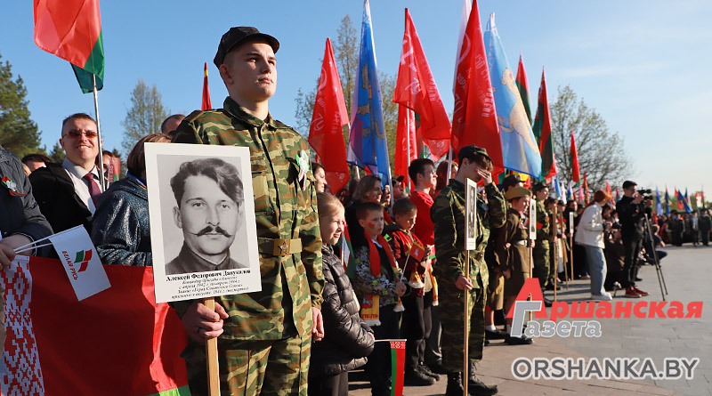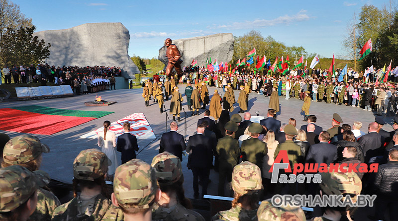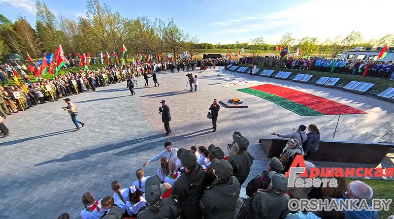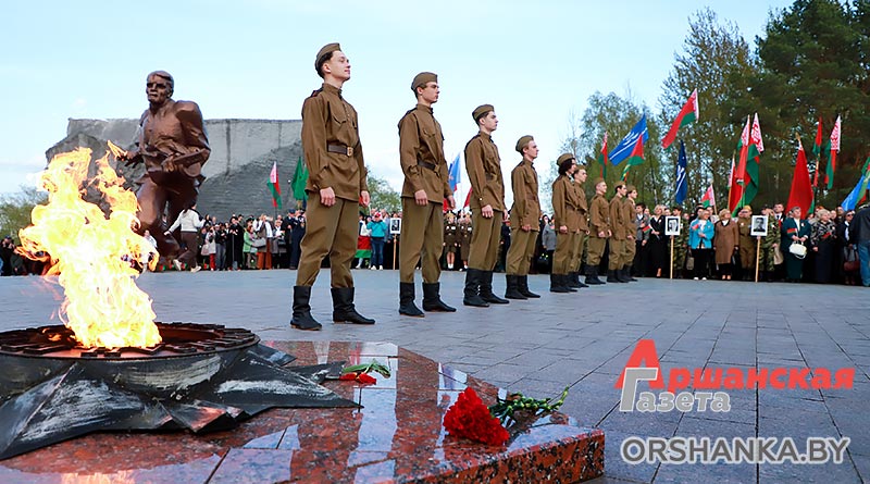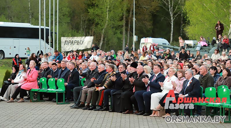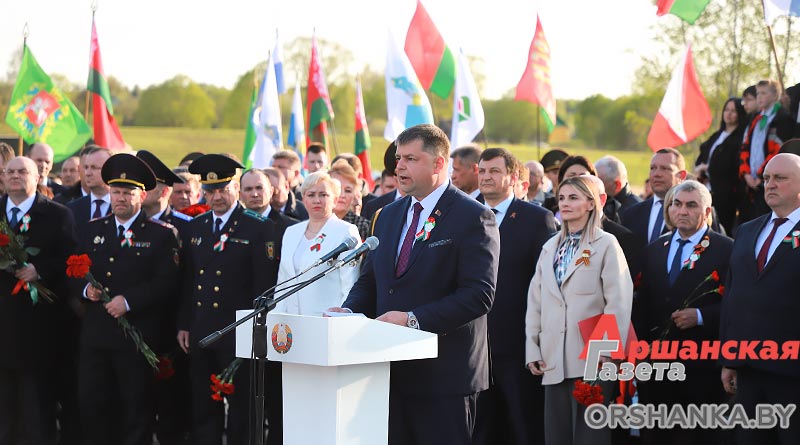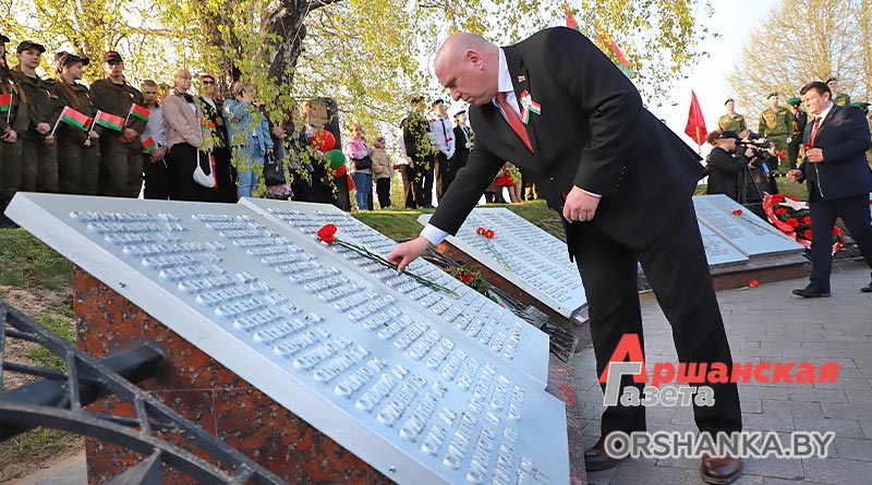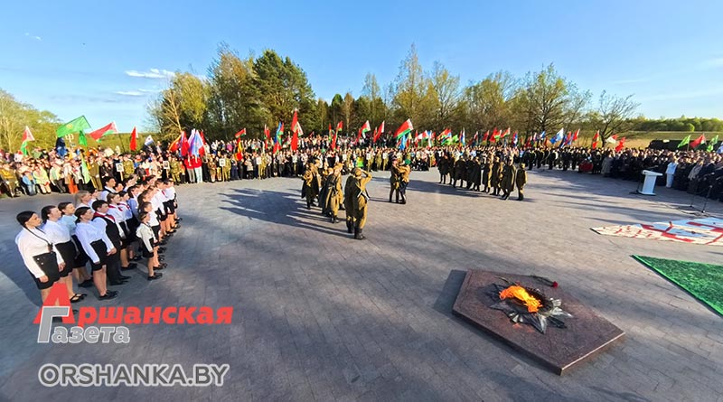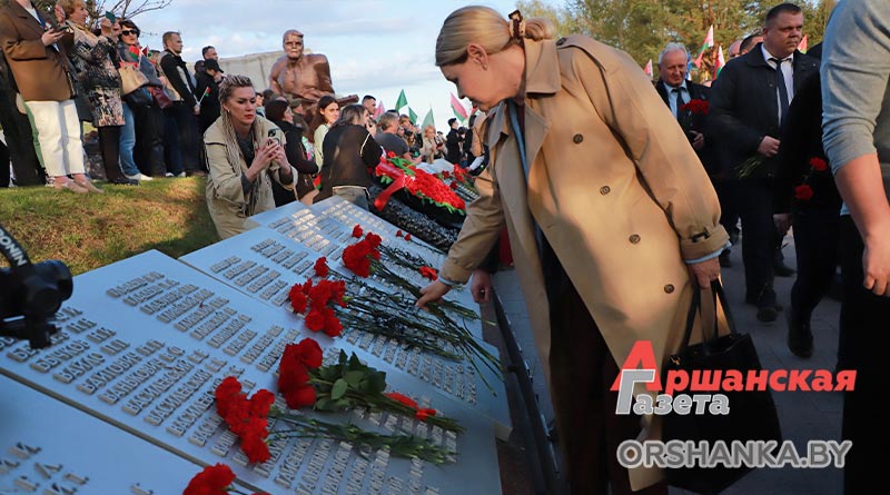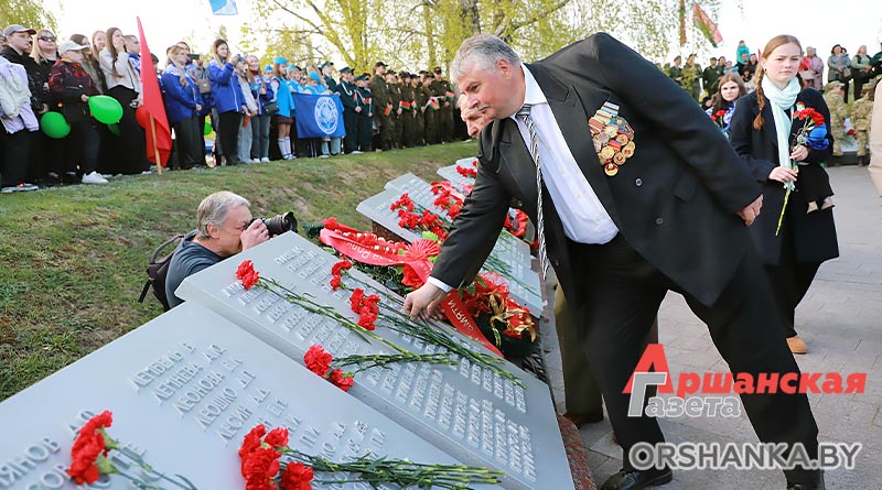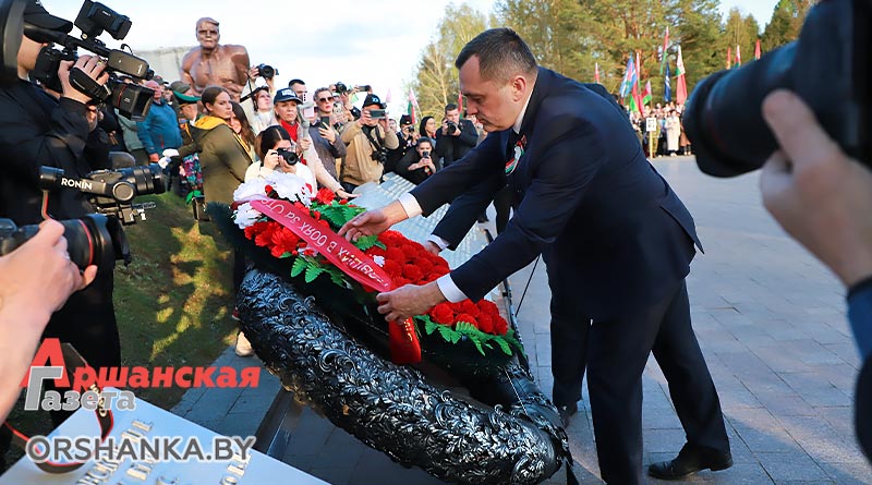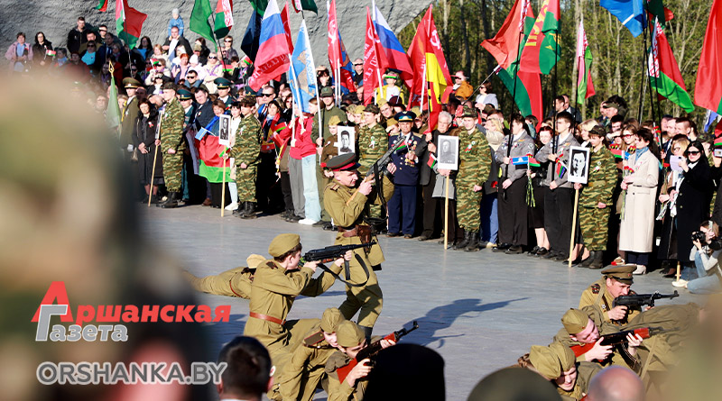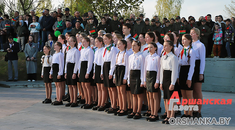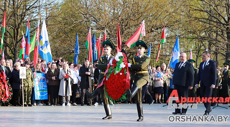 Участники торжественного митинга почтили память погибших минутой молчания, возложили венки и цветы. А затем мероприятие продолжилось праздничным концертом «Во имя мира на Земле» с участием творческих коллективов Витебщины. Оршанский район представили народный ансамбль народной песни «Гагарынскія мызыкі», шоу-группа «Альянс», хореаграфический коллектив «Non Stop», солисты народной студии пения «Креатив».