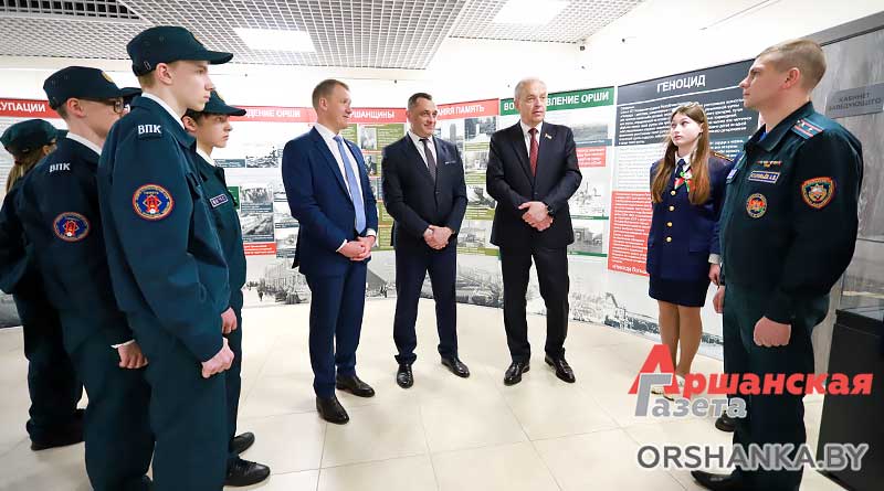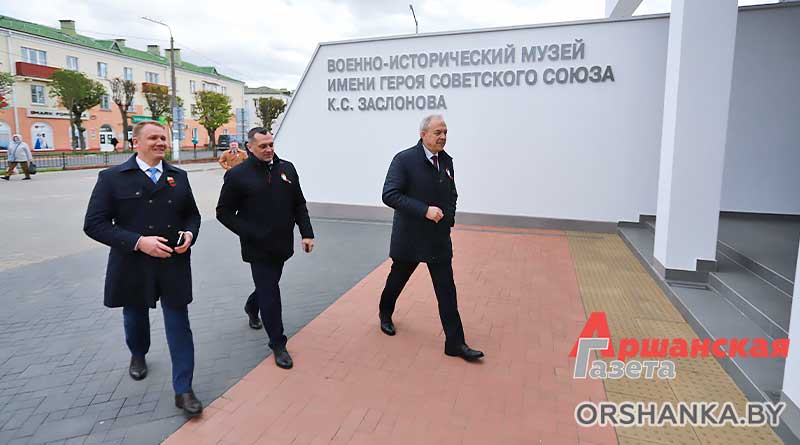 После церемонии гости посетили Военно-исторический музей имени Героя Советского Союза К. С. Заслонова, где встретились с членами военно-патриотического клуба «Память» гимназии №1 имени Г. В. Семёнова и учащимися колледжа железнодорожного транспорта. Для них состоялась презентация нового проекта «Орша: БОРЬБА ЗА ПОБЕДУ» и совершили обзорную экскурсию по музею.