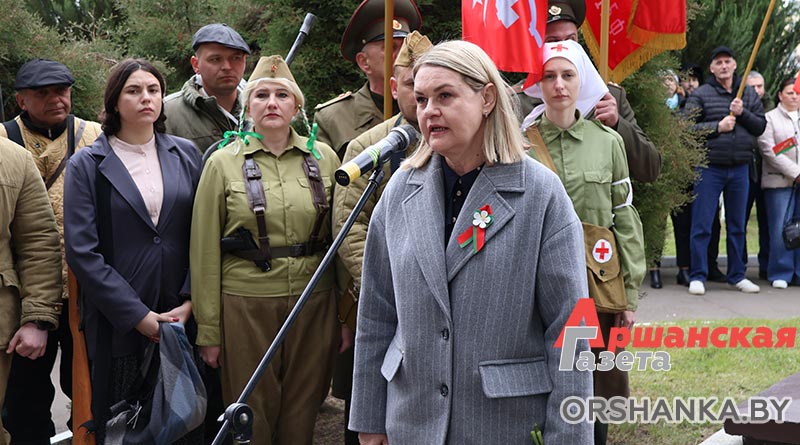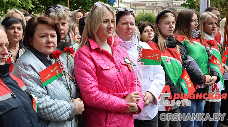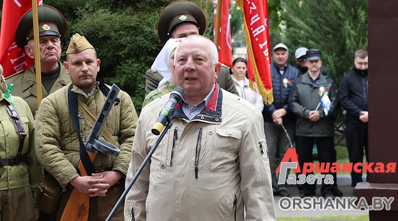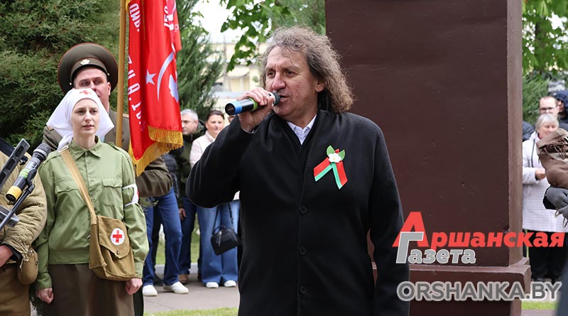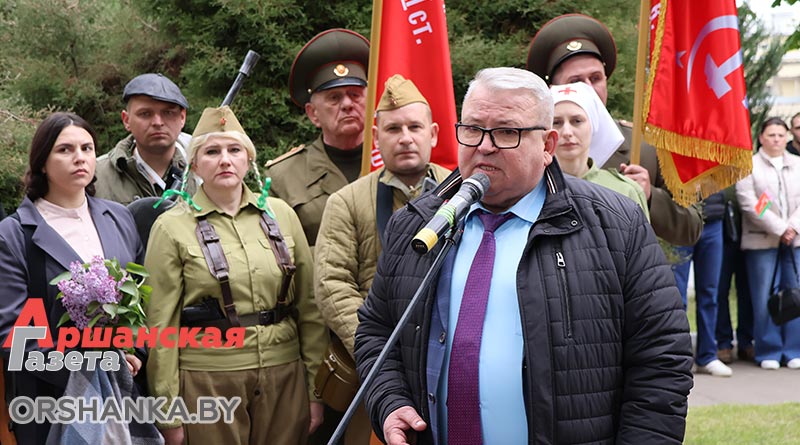 С поздравительными словами в честь 80-летия Великой Победы к присутствующим на митинге обратились председатель Оршанского районного Совета депутатов Инна Хомутовская, генеральный директор Оршанского мясоконсервного комбината Максим Бакуров и заместитель генерального директора по организационно-кадровой, идеологической работе и режиму Нина Карпалова, директор Оршанского государственного колледжа продовольствия Геннадий Синявский и председатель ветеранской организации предприятия Александр Жидко.