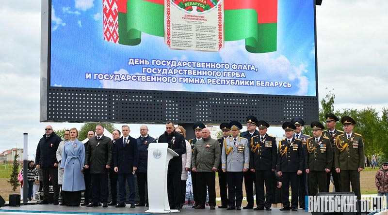 – Сегодня, в День Государственного флага, Государственного герба и Государственного гимна Республики Беларусь, мы открываем в областном центре площадь Герба и Флага. Это событие знаковое для всего региона. Только что в небо на высоту почти 70 метров поднялось красно-зеленое полотнище – символ нашего суверенитета и свободы, единства и патриотизма, стремления, которым белорусы пронеслись сквозь столетия. 30 лет назад состоялся референдум, на котором подавляющее большинство белорусов проголосовали за наши государственные символы. И в настоящее время люди голосуют за свою историческую судьбу, за историческую память, историческую преемственность. Именно с этими символами наш народ добился мирового признания и того уровня развития, которое мы сегодня имеем, — подчеркнул председатель Витебского областного исполнительного комитета Александр Субботин.