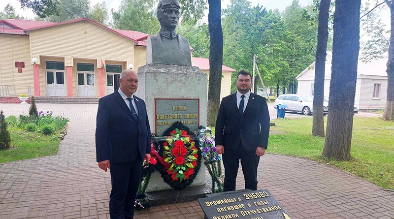 Затем Борис Тихамиров и Геннадий Дроздов возложили цветы к памятнику землякам, погибшим в годы Великой Отечественной войны, и познакомились с работой Зубовского сельского Дома культуры.