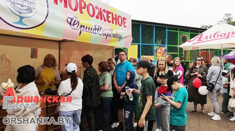 Для маленьких оршанцев спонсоры мероприятия УП «ОршаСырЗавод» приготовили 20 кг мороженого. В палатку предприятия за мороженым стояла большая очередь.