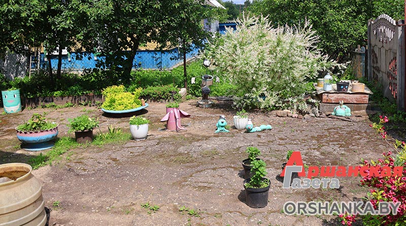 Конечно, пообщались мы и с местными жителями, которые с большим удовольствием показали нам, как они украшают свои придомовые территории. Валентина Толкачёва и Римма Шлейхман живут напротив друг друга по улице Северной. Раньше вместе работали в детском саду и школе. На заслуженном отдыхе они не сидят сложа руки. Их дома привлекают внимание прохожих издалека. Множество цветов и малых архитектурных форм делают одну из улиц деревни еще более красочной. Это дружные, душевные люди, которым есть что рассказать и о чем вспомнить.