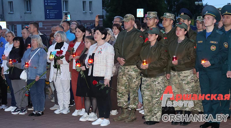– 84 года назад фашистская Германия вероломно напала на Советский Союз. 1 418 дней и ночей наши деды и прадеды ценой своих жизней освобождали нашу страну от захватчиков, – обратилась к участникам митинга заместитель председателя Оршанского райисполкома Анастасия Прокофьева. – На полях сражений погиб каждый третий белорус. А тысячи наших соотечественников – мужчин и женщин, детей и стариков – были зверски замучены в концентрационных лагерях или увезены на работы в Германию. Наши с вами главные задачи сохранить историческую правду об ужасных событиях тех лет и сделать всё возможное, чтобы война больше никогда не повторилась.