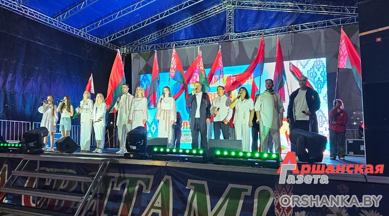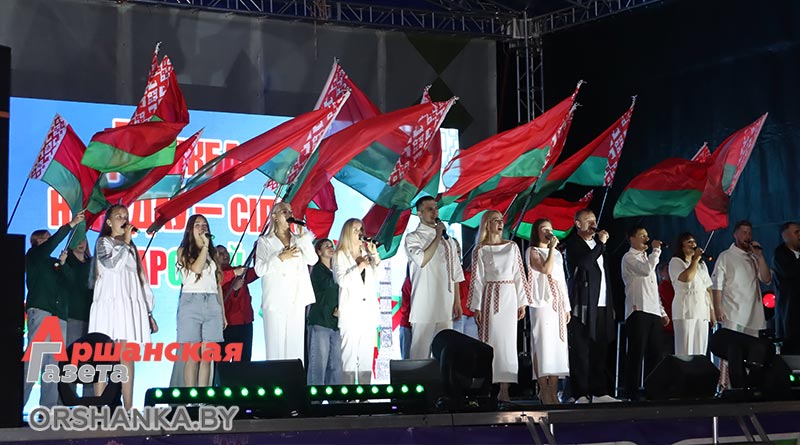 Завершился праздник республиканской акцией «Споем гимн Республики Беларусь вместе» и праздничным салютом.