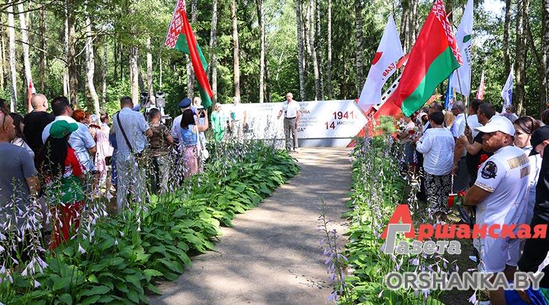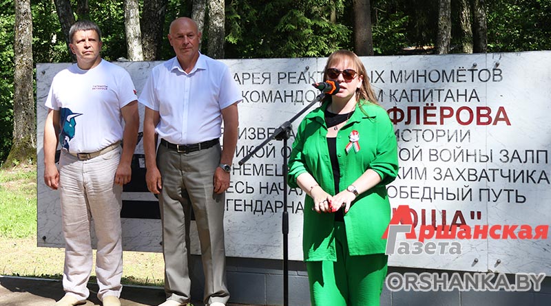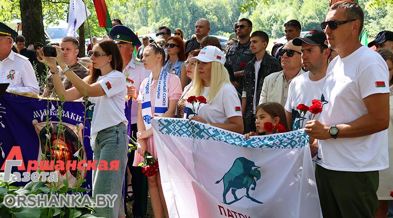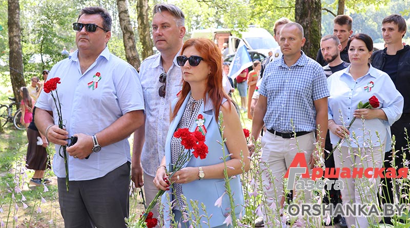 Здесь состоялся торжественный митинг. С приветственными словами к участникам акции обратились начальник отдела идеологической работы и по делам молодежи Оршанского райисполкома Мария Шматова, председатель Оршанского районной организации РОО «Патриоты Беларуси» Виктор Колочёв и председатель Пищаловского сельского исполнительного комитета Леонид Поляков.