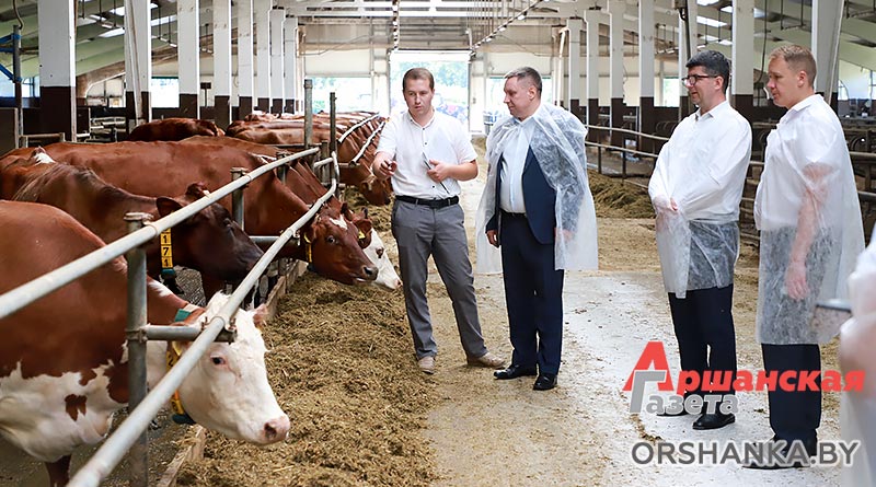Первой точкой на маршруте главы ведомства стал молочнотоварный комплекс «Устенский» РПУП «Устье» НАН Беларуси». Вместе с первым заместителем председателя Витебского облисполкома Сергеем Левковичем и председателем Оршанского райисполкома Игорем Морозом он посмотрел, как организованы процессы ухода, кормления, содержания и доращивания молодняка.
