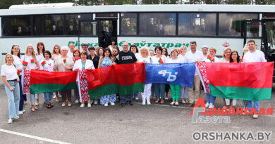 Пока разговаривали, бункеры комбайнов наполнились зерном. К ним поспешили трактор и МАЗ. И вот уже в прицепы льются золотые струйки. Пора поспешить на Оршанский комбинат хлебопродуктов. Садимся в кабину Геннадия Подвицкого и отправляемся в путь.