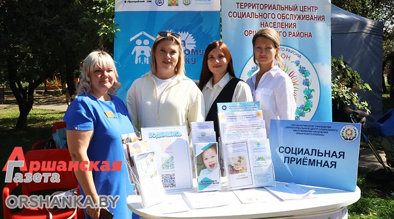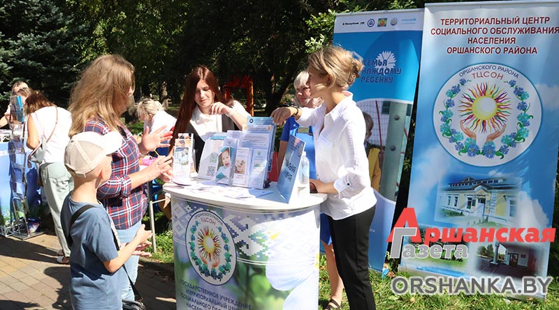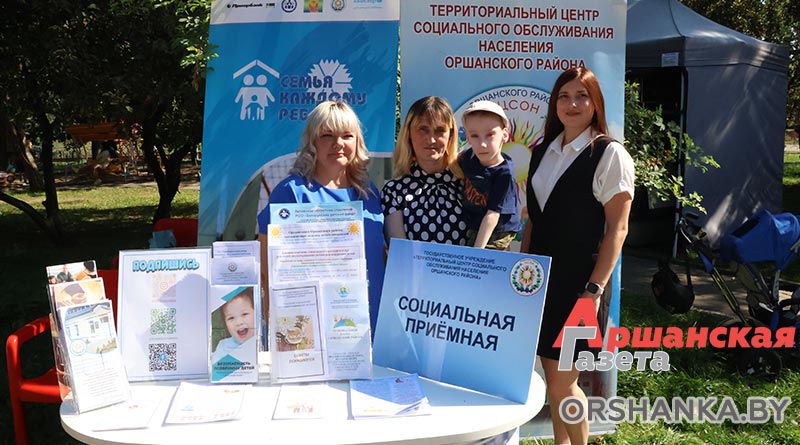Во время праздника работала «Социальная приемная» территориального центра социального обслуживания населения Оршанского района. Пока дети были увлечены играми, у родителей была возможность пообщаться со специалистами ТЦСОН, узнать об оказываемых социальных услугах, видах помощи для семей и получить консультацию психолога.