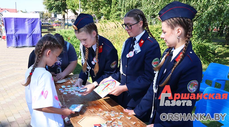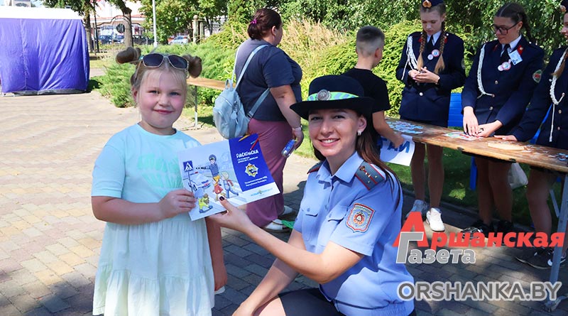 Работали не только интерактивные площадки для детей всех возрастов, но и информационно-познавательные, а также различных служб города. Сотрудники Госавтоинспекции и активисты отряда ЮИД Бабиничской средней школы подготовили обучающую площадку, где каждый желающий мог проверить свои знания ПДД. Юные оршанцы в преддверии нового учебного года в игровой форме изучали дорожные знаки, сигналы светофора и повторяли правила поведения на дороге. Ребятам была предложена занимательная викторина, где они могли ответить на вопросы и получить полезные подарки.
