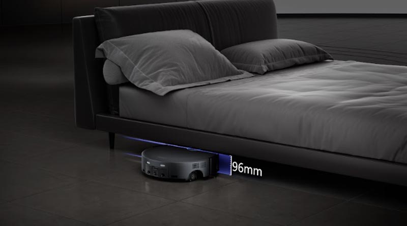 Мощность всасывания у этого пылесоса достигает 28 000 Па, а уникальный датчик LDS FlexiRise позволяет роботу уменьшать высоту корпуса до 96 мм, легко проходя под мебелью. Дополняют картину технологии LiftPro для преодоления препятствий до 8 см и MaxiReach, которая гарантирует тщательную уборку вдоль стен и в углах.